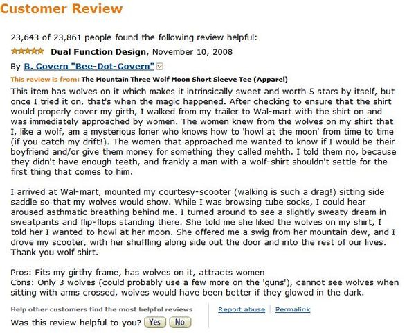 Three Wolf Moon A Case Of Ironic Review Understanding The Web