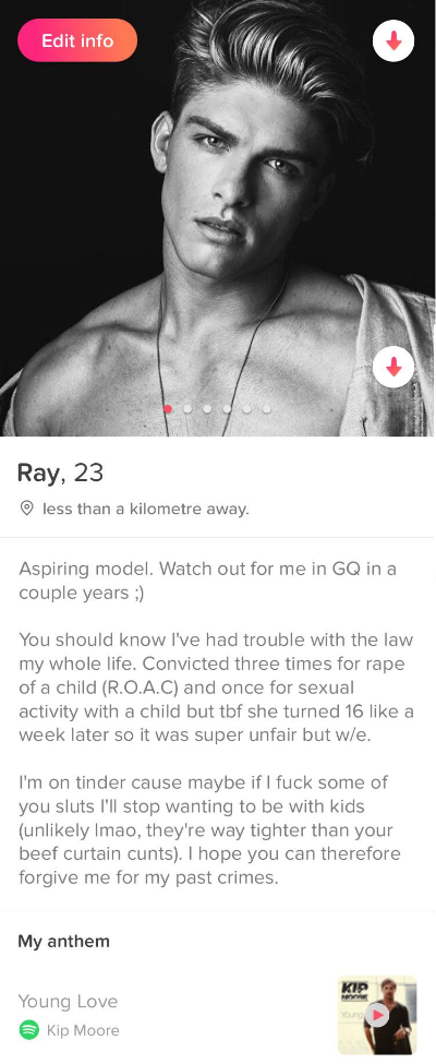 Top posts from r tinder on reddit. Well it turns out that people don t care if you re a convicted child rapist on tinder as long as you re really attractive. Chad says beta thingsis a series of awkward and cringeworthymessages sent by an anonymous tinderuser to several women using a fake profile image of an athletic attractive looking man an online dating archetype often referred to as chad thundercockon 4chan s r9k board. Chadfishing is a form catfishing in which men within the incel community created a fake dating application profile by posing as a conventionally attractive male known as a chad for the purpose of criticizing and humiliating women. I went on tinder as the ultimate chad duration. He created a tinder profile using pics of the guy from the call me maybe music video. The virgin vs the chad the sexual social conflict in books movies and drama duration.