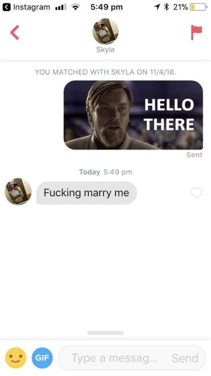 Hello there tinder meme. Laura sánchez recommended for you. Check out some of the funniest pics gifs and convos from tinder that became quite popular for memeing. When you know more hot people are a few swipes away why bother putting a ton. Unsubscribe from sheevy memes. Hai hai kazuma zuko desu. This is a meme compilation of obi wan kenobi saying hello there to general grievous from star wars. Join my discord never expire.