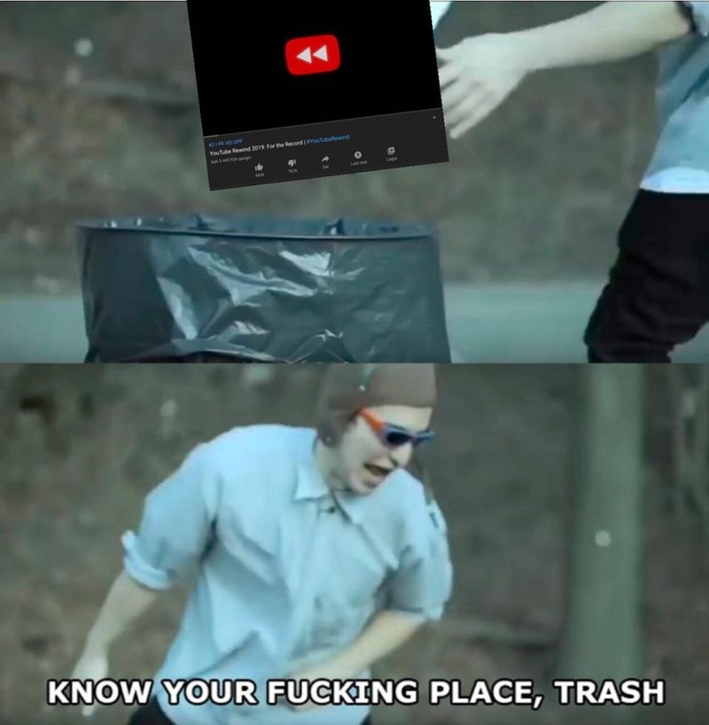 Youtube rewind 2019 memes. A december 5th post by redditor tomsanandreas received over 2 500 upvotes shown below right. Youtube rewind 2019 but memes so a psychedelic joyride reminds you of the beauty of existence as y duration. On december 5 2019 youtube rewind 2019. Rewind 2019 every day creators and artists across the globe share their talents on youtube and create unforgettable moments along the way. Despite being included in youtube rewind 2019 pewdiepie along with flyingkitty party in backyard grandayy and dolan dark created their take of youtube rewind 2019 on december 29 2019 titled youtube rewind 2019 but it s actually good which focused on the notable memes of 2019 and also paid homage to the death of various creators. Youtube rewind 2019 but memes so instead of being bored you re diving headfirst into a beautiful c lyrics. Scroll to rewind the stories and videos that defined 2019.